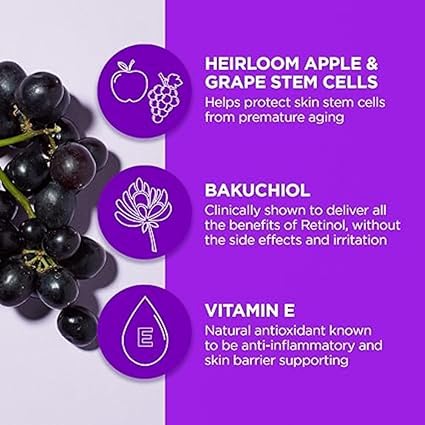 • Highly concentrated fruit stem cell complex and super antioxidants, increases dermal vitality as Bakuchiol, a natural plant-based alternative to retinol, reduces the appearance of fine lines and wrinkles and improves skin texture and tone for a firmer, more youthful appearance and rejuvenated complexion.