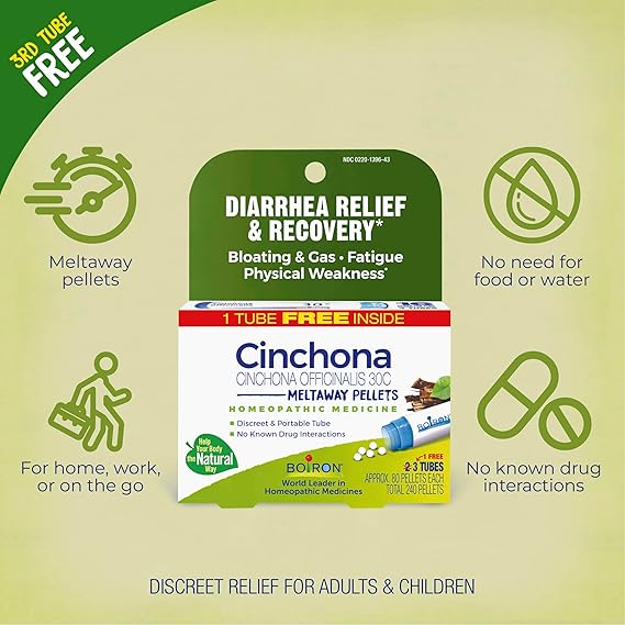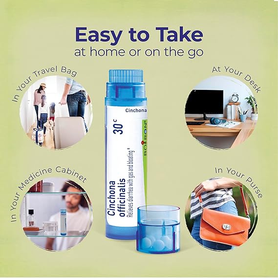 Customize your care with Boiron single medicines for highly targeted relief. Cinchona Officinalis 30C is a homeopathic medicine that relieves diarrhea with gas and bloating.* The pellets melt in your mouth and can be taken on the go, no food or water needed.