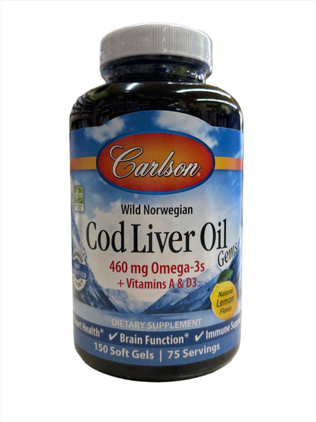 Wild Norwegian Cod Liver Oil Gems Lemon Flavor 460 mg 150 Soft Gels