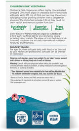 - PLANT-BASED OMEGA-3 DHA: Made exclusively from 100% vegetarian marine microalgae, Children's DHA Vegetarian helps plant-based families give growing children a safe, reliable and effective source of omega-3 DHA in a highly absorbable formula designed for daily use.