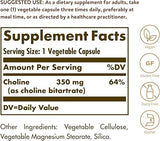 Solgar Choline 350 mg Vegetable Capsules 100V cap