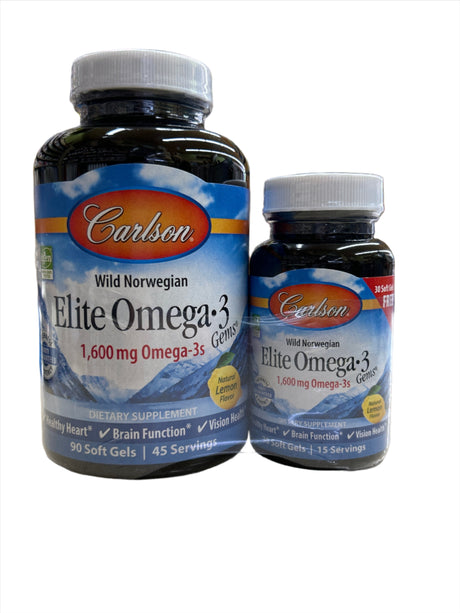 Wild Norwegian Elite Omega-3 Gems Lemon Flavor 1600mg 90+30 Soft Gels