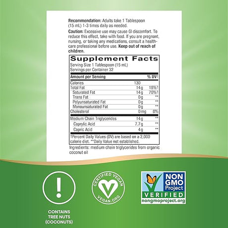 Garden of Life Dr. Formulated Brain Health Organic Coconut MCT Oil 16oz LIQUID
