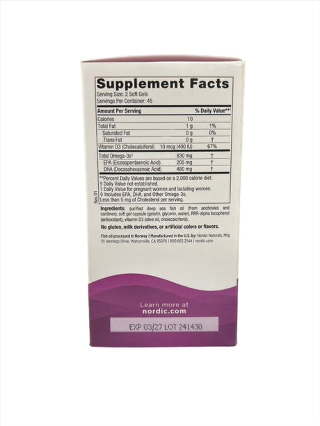 Prenatal DHA 830 mg, 400 iu Vitamin D3 Strawberry Flavor
