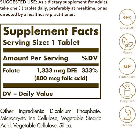 Solgar Folate 666 mcg DFE (Folic Acid 400 mcg) Tablets 250tablet