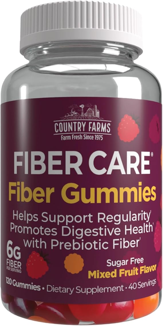 Country Farms Fiber Care Prebiotic Gummies, 6g of Fiber Per Serving, FOS from Beets, Digestive Health, Supports Regularity, Mixed Fruit Flavor, 120 Gummies, 40 Servings, Multi