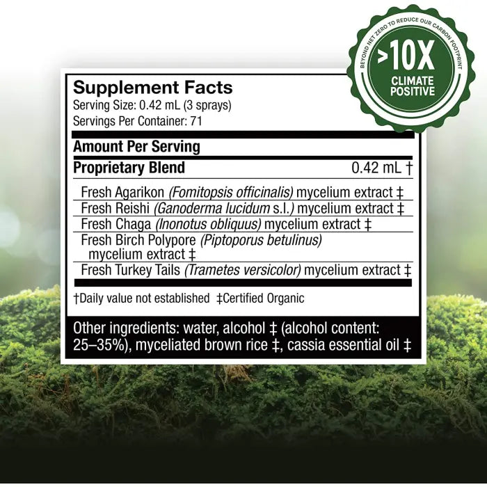 - Made with U.S. grown, double extracted organic mushroom mycelium