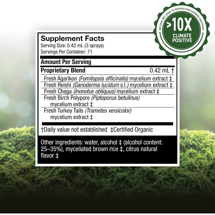 - Made with U.S. grown, double extracted organic mushroom mycelium