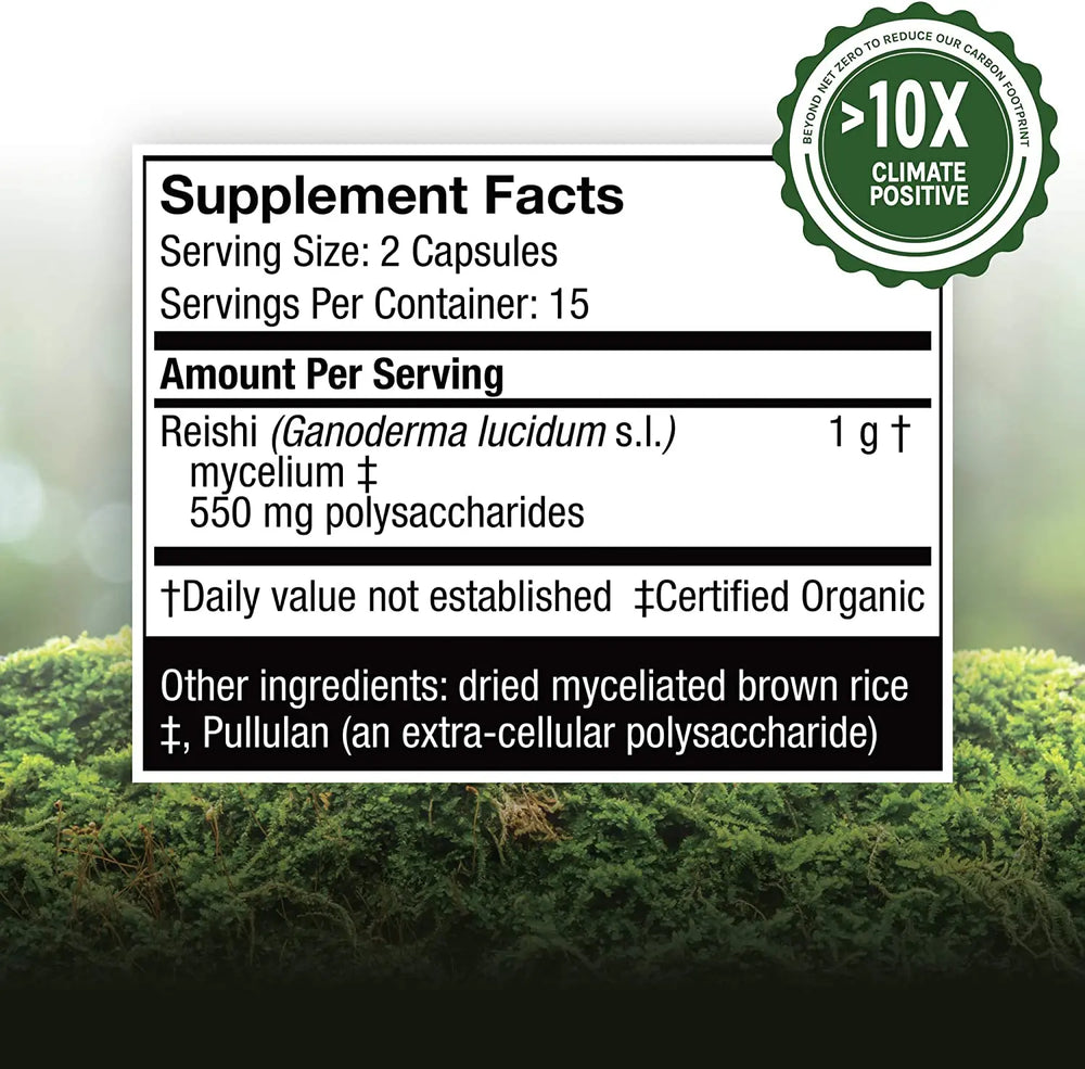 - Organic Reishi Mushroom Mycelium to support heart health and help give you energy and stamina throughout the day, while also supporting your body's ability to react to stress