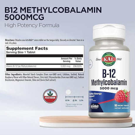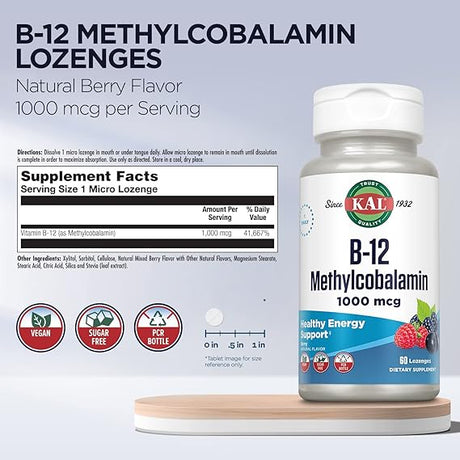 Kal B-12 Methylcobalamin Adenosyl Mixed Berry 60CT 2000MCG Lozenge