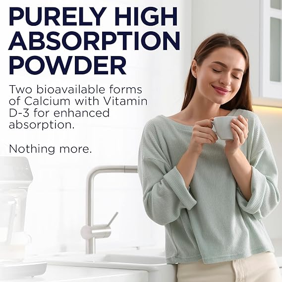 - Pure Powder: Gluten-free and non-GMO, this potent, unflavored calcium vitamin D supplement contains no added ingredients and supplies 77% of your daily calcium.