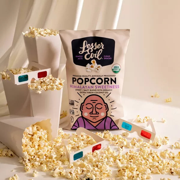 LesserEvil Organic Popcorn, Himalayan Sweetness, is made with only the best ingredients– Organic Non-GMO Popcorn, Organic Coconut Oil and unrefined Organic Cane Sugar. We can all be a balance of salty sweet, and this popcorn is no exception. Fluffy with a crunch to satisfy snack cravings without any harmful additives. We make ours with minimal processing for your maximum snackability.