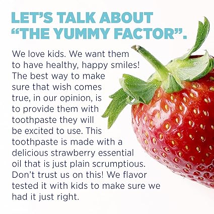 - STRAWBERRY YUMMINESS: Our kid-tested and approved toothpaste has a slightly sweet and fruity flavor that makes it easy to implement a good brushing routine. SLS-free, sulfate-free, fluoride-free, dye-free, preservative-free, triclosan-free, and certified non-toxic.