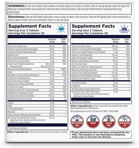 KAL AM/PM Multivitamin for Men, Antioxidant