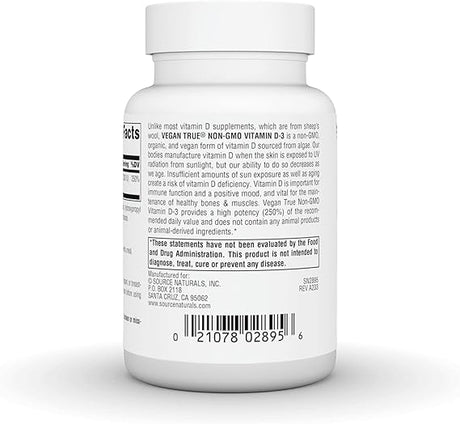 Source Naturals Vegan True NON-GMO Vitamin D-3 50 mcg (2,000 IU)