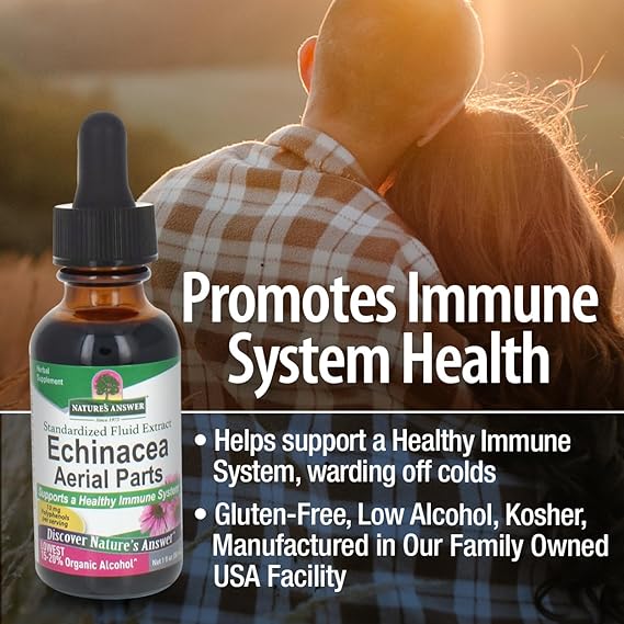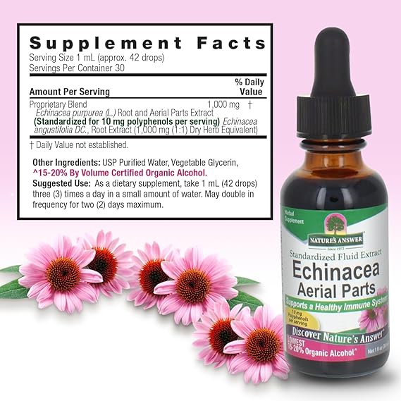 Nature's Answer Echinacea Liquid Drops Organic Low Alcohol 1 fl oz Non-GMO Kosher Gluten Free Super Concentrated Immune Support