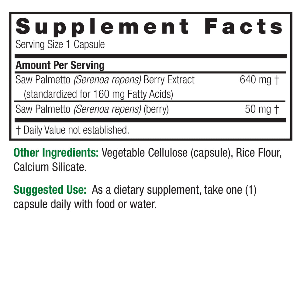 NATURE'S ANSWER SAW PALMETTO BERRY EXTRACT 120VC - 120 vegetarian capsules is backordered and will ship as soon as it is back in stock.