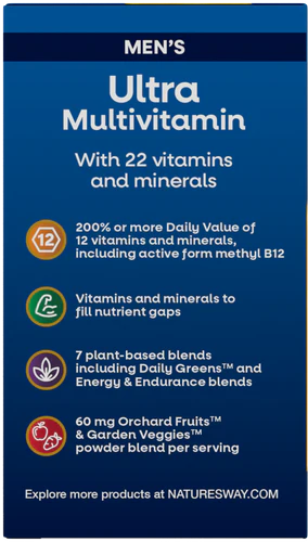 Supercharge your wellness routine with one convenient tablet packed with the good stuff. Alive! Once Daily Men’s Ultra Potency is a complete multivitamin formulated to support your go-getting lifestyle with 100% or more of Daily Value of 19 vitamins and minerals and 200% or more of Daily Value of 12 vitamins and minerals, including premium B-vitamins to convert food into cellular energy so you can hit the trails, hang with your family, and feel your best for every moment.*