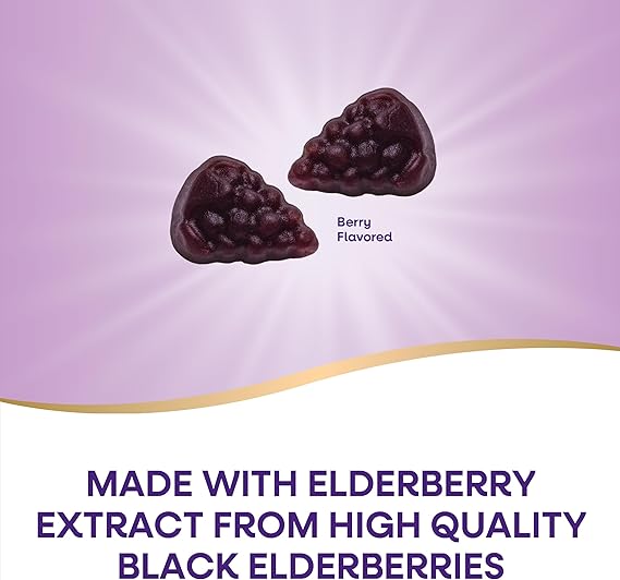 - Sambucus Immune Gummies are made with 90 mg of vitamin C, 30 mcg (1,200 IU) of vitamin D3 and 7.5 mg of zinc per 2-gummy serving to support immune health.* Also with highly concentrated, premium black elderberry extract.