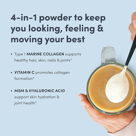 - COLLAGEN SUPPLEMENTS: One 7 oz canister with 20 servings of unflavored NeoCell Marine Collagen Powder With Hyaluronic Acid, MSM and Vitamin C to support healthy skin, hair, nails and joints (1)