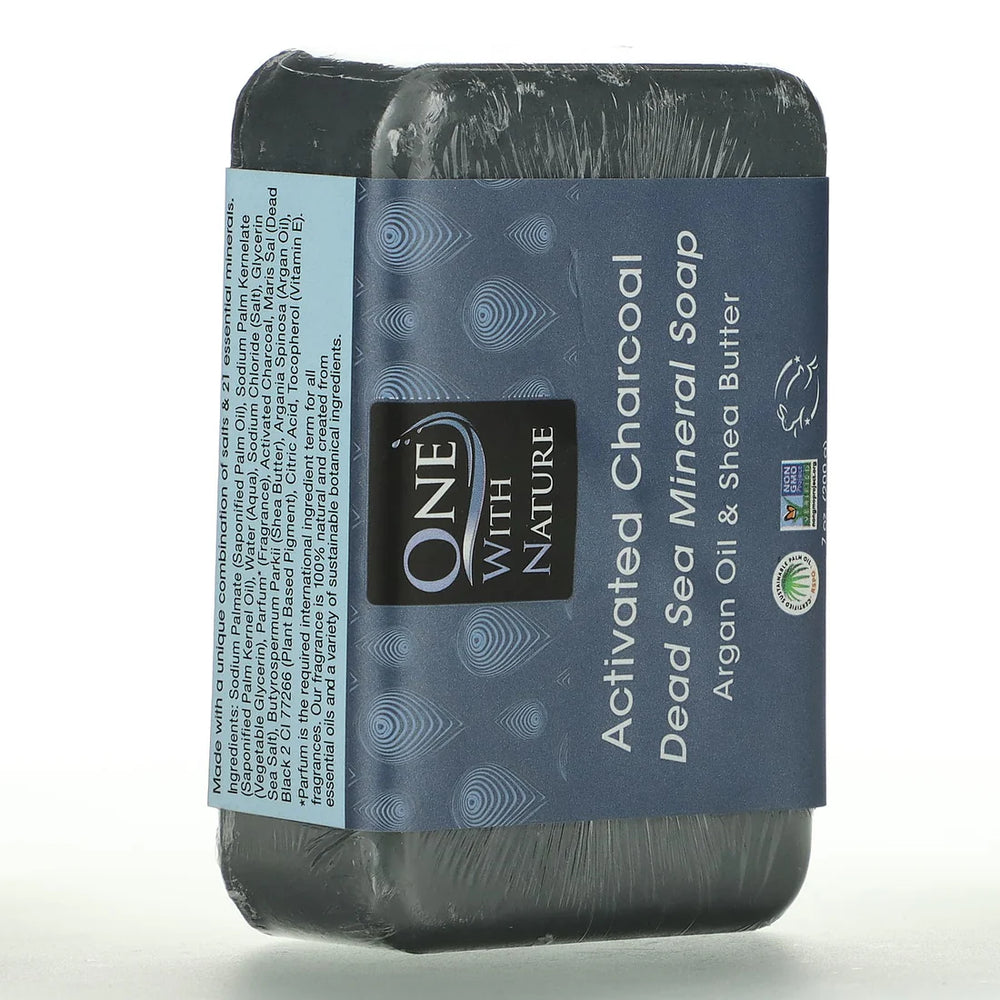 ONE WITH NATURE, Activated Charcoal Dead Sea Spa Bar Soap, 7 OUNCE