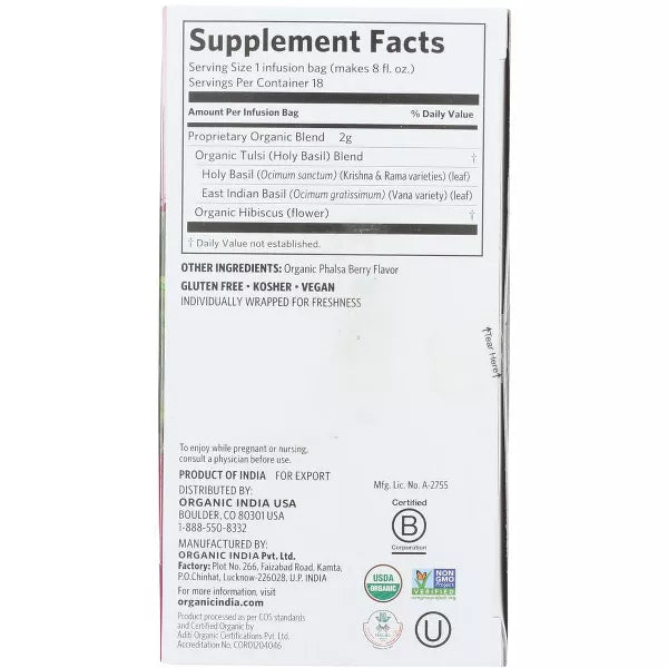 Organic India Tulsi Tea Hibiscus 18 Bag Box