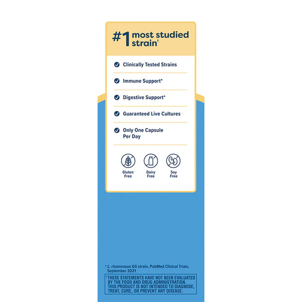 - Delayed-release, once-daily capsule with multiple clinically tested probiotic strains