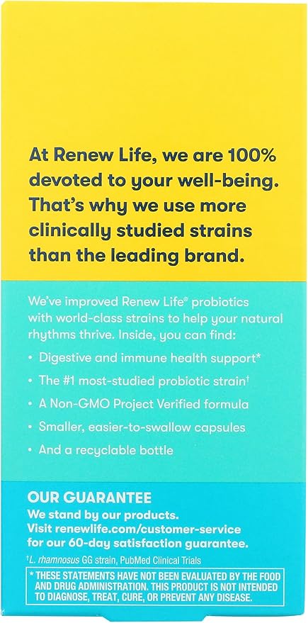 We don't compromise on quality. You trust us with your health and we take that seriously, which is why Renew Life Adult 50+ Probiotic guarantees:
