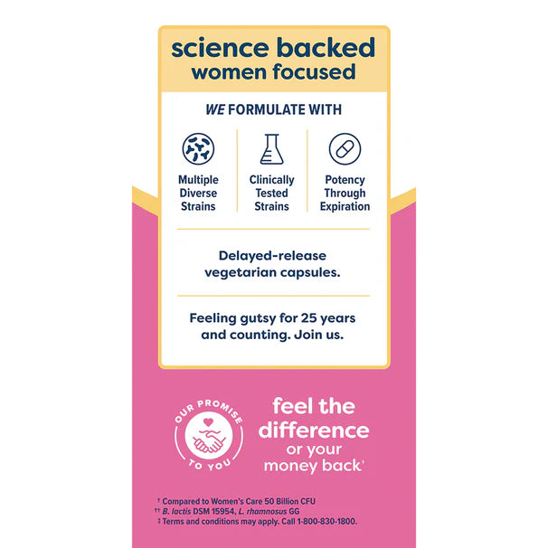 Made for women by women, Renew Life Women's Care Probiotic has 50 billion live cultures to help maintain healthy vaginal bacteria and yeast levels - and promotes immune, urinary and digestive health, too.