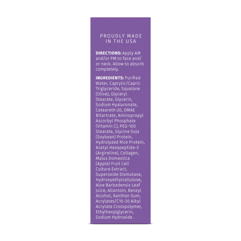 Advanced Peptide Plus contains proven-effective anti-aging ingredients: Argireline, Vitamin C, DMAE, Collagen, Swiss Apple Stem Cell Extract, and Soy. It’s a wonderfully potent combination of antioxidants, peptides, and soothing ingredients in a light, balanced formula. While results are immediately visible, daily use will provide cumulative benefits, reducing the appearance of fine lines and wrinkles and giving your skin a youthful glow. Benefits are amplified and accelerated when it’s layered over our Peptide Facial Skin Prep.