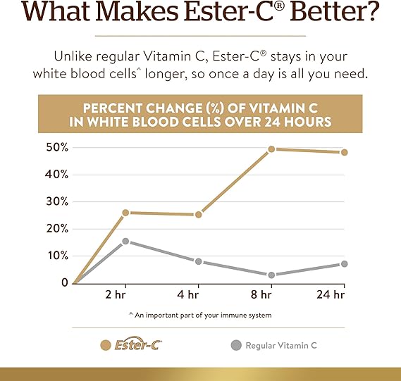 - 24-Hour Immune Support; No other vitamin C gives you what Ester-C does; Solgar Ester-C Plus 500 mg Vitamin C offers a unique, non-acidic Ester-C vitamin C that is gentle on the stomach and offers 24-hour immune support