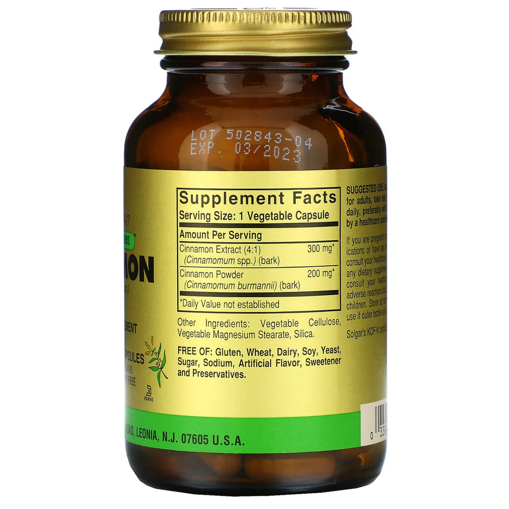 Solgar, Fp Cinnamon Vegetable, 100 Vegetable Capsules