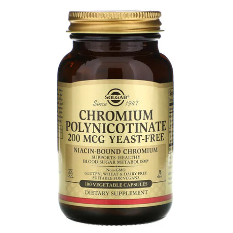 Solgar Chromium Polynicotinate 200 mcg Yeast Free Vegetable Capsules 100V cap