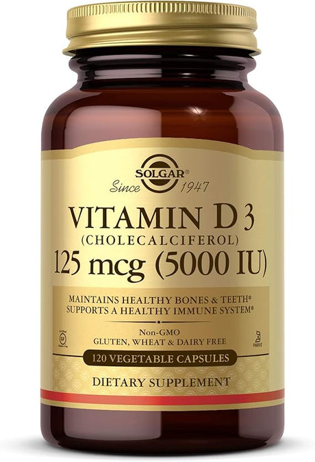 Solgar Vitamin D3 (Cholecalciferol) 125 mcg (5,000 IU) Vegetable Capsules 120V cap
