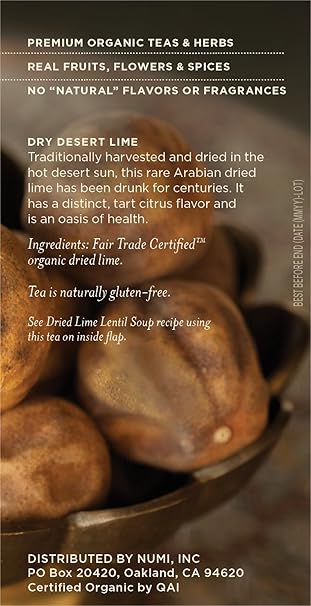 Numi Organic Dry Desert Lime Tea, Box of 18 Tea Bags