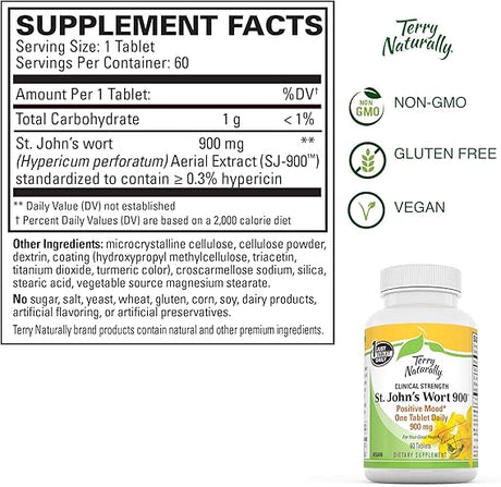 Terry Naturally St. Johns Wort 900 Positive Mood 60 Tablets
