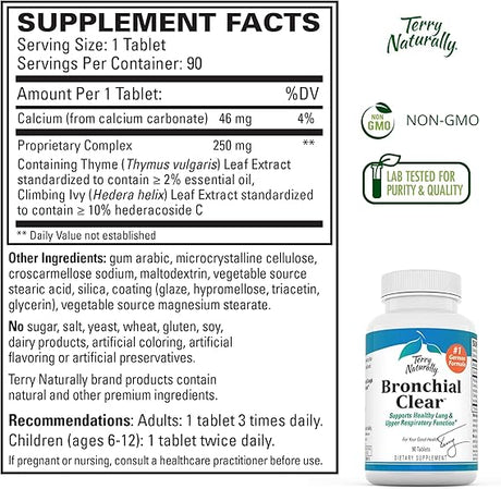 Terry Naturally Bronchial Clear Lung and Upper Respiratory Function 90 Tablets