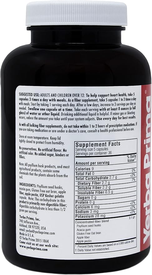 Yerba Prima Soluble Fiber Formula Capsules 180 Count