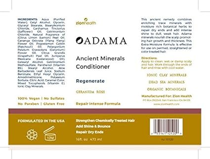 Adama Minerals Conditioner includes more than 57 trace minerals in pure form. These nutrient rich minerals are an exceptional formula for color treated and chemically treated hair.