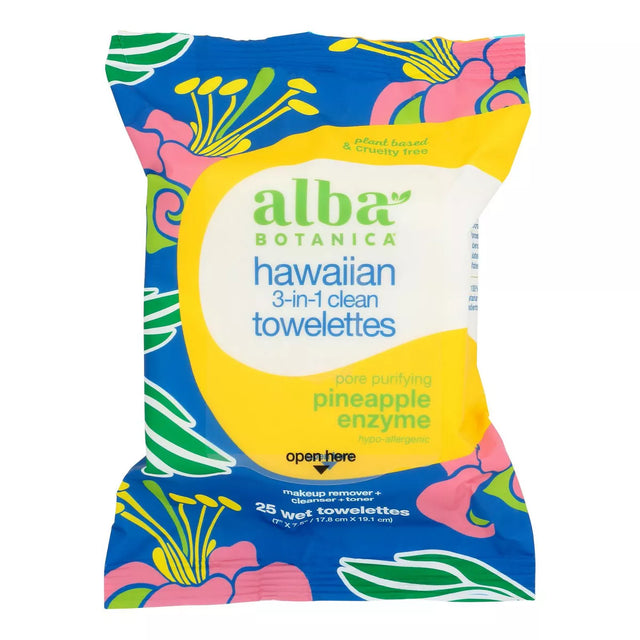 Alba Botanica Hawaiian 3-in-1 Clean Towelettes Pineapple Enzyme - 25 ct