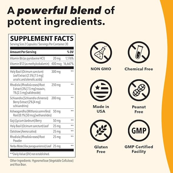 - Clinically Proven Ingredients: Our Adrenal-T formula contains Rhodiola, an adaptogen that supports the body’s ability to resist physical, chemical, and biological stress. Ashwagandha, another added ingredient, is another powerful adaptogen that supports energy levels, fatigue, muscle tension and weakness, as well as nervous exhaustion. Additionally, Adrenal-T includes potent doses of holy basil, schisandra, vitamin B6, and other ingredients.