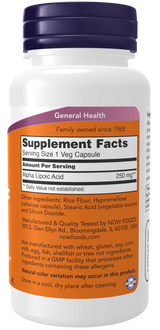 Now ALPHA LIPOIC ACID 250mg 120 VCAPS
