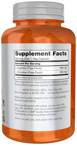 Now ARGININE 500mg CITRULLINE 250mg 240 VCAPS