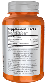 Arginine & Ornithine combines two complementary amino acids in one convenient supplement. Arginine is required for proper elimination of urea from the body, which occurs through a critical metabolic cycle that detoxifies the body of nitrogen compounds that are normal by-products of protein metabolism.* Ornithine is synthesized from arginine and is a precursor of citrulline, proline and glutamic acid.* Both of these amino acids are popular with athletes and other active individuals.