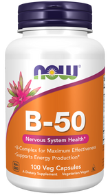 B-50 Caps provide a full complement of B-vitamins plus choline and inositol. These vitamins work to support energy production, maintain healthy homocysteine metabolism, and promote the health of the nervous system.* B-vitamins are water soluble, and with the exception of B-12, have limited storage in the body and thus require daily replenishment. While B-12 is stored in the liver, dietary sources are of animal origin only (meat and dairy) and supplementation with B-12 may be especially important for vegetarians.