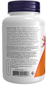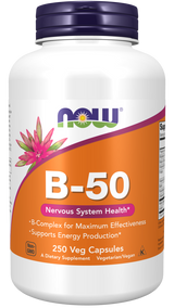 B-50 Caps provide a full complement of B-vitamins plus choline and inositol. These vitamins work to support energy production, maintain healthy homocysteine metabolism, and promote the health of the nervous system.* B-vitamins are water soluble, and with the exception of B-12, have limited storage in the body and thus require daily replenishment. While B-12 is stored in the liver, dietary sources are of animal origin only (meat and dairy) and supplementation with B-12 may be especially important for vegetarians.
