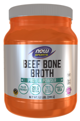 NOW® Sports Beef Bone Broth Powder is a premium-quality beef bone extract that has 28 g of protein per serving. Beef bone broth is a common food base in many cultures and has naturally occurring protein, amino acids, collagen and more. This paleo-friendly protein product is made without artificial ingredients, and is free of many common allergens, making it an ideal protein for individuals with food sensitivities. NOW® Sports Beef Bone Broth Powder can be mixed in water and is a tasty and convenient way to ensure you’re getting the protein your active lifestyle requires.