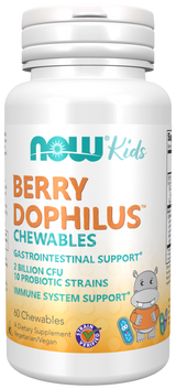 NOW® BerryDophilus™ provides 2 billion CFU from a combination of 10 clinically validated probiotic bacterial strains designed to support gastrointestinal health and healthy immune system function.* Healthy intestinal flora also helps to create a favorable environment for the absorption of nutrients.* BerryDophilus™ can be used by both adults and children. Sweetened with xylitol, BerryDophilus™ won't harm teeth and it tastes great.