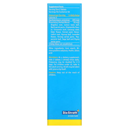 As a dietary supplement, take 2 tablets 3 (three) times daily. Frequency may be doubled for 2-3 days. For children under 12, take 1/2 the adult serving. Strath may be taken with juice or by itself.