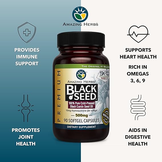 • Black Seed Experts: Amazing Herbs Premium Black Seed Oil Pills Formulation Offers Natural Oil Intended For Oral Administration, Contains Omega Fatty Acids And 5x Thymoquinone For Health Benefits